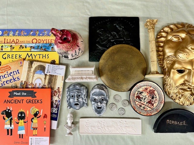 Ancient Greek boxThe artefacts Illustrate many aspects of ancient Greek life, their achievements and their influence on us today, from mathematics, philosophy, politics, justice and theatre to religion, medicine and the Olympics. |