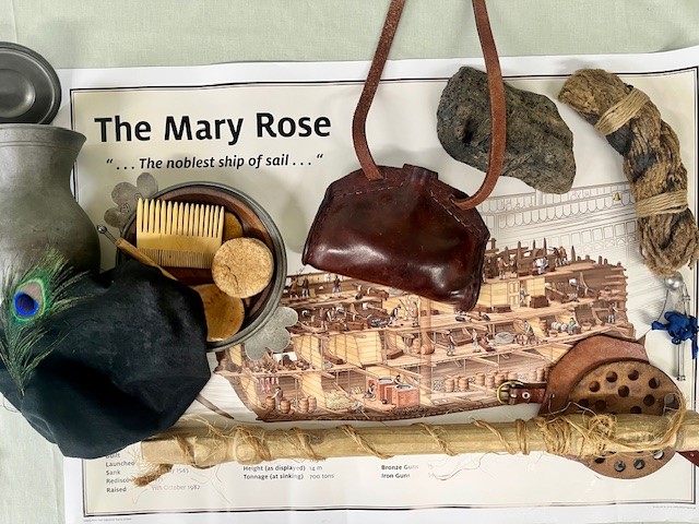Mary RoseThis collection of artefacts has been loaned to us from the Mary Rose Museum and are replicas of the real items found on board alongside real pieces of wood and rope from the shipwreck. They can be used to explore what life was like on board for both officers and sailors in this Tudor time capsule. |